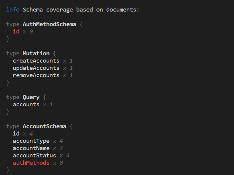 For eg. this is how finding the coverage of your operations against the schema looks like: